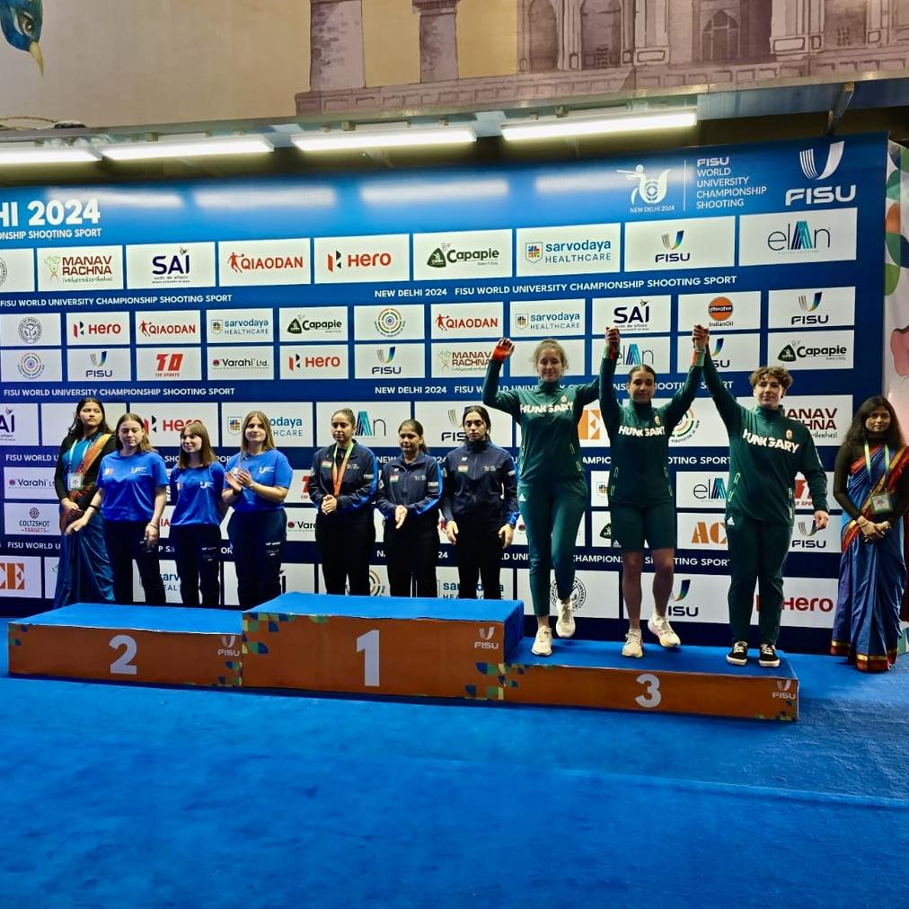 Két pisztolyos lányunk is döntőbe jutott az Új-Delhiben zajló egyetemi VB-n. Jákó Miriam 583 körös eredménnyel a második, míg Fábián Sára 581 körrel a 4. helyen jutott a döntőbe. Mirjam végül 9 ponttal a 8., míg Sára az 5. helyen végzett 21 ponttal. A csapat harmadik ragja, Domsits Olívia 562 körrel a 21. helyet szerezte meg. Csapatversenyben lányaink az indiai és az olasz csapat mögött a harmadik helyen végeztek. Ez volt a magyar csapat harmadik bronzérme. Egyéniben a koreai Kim Minseo győzött 35 ponttal, mögötte a francia Fourre 34, és az indiai Simranpreet 30 ponttal végzett. Puskás lányaink nem jutottak döntőbe a légpuskás versenyszámban. Legjobban Mészáros Eszter lőtt, a 627, 9 körös eredménnyel a 15., Bajos Gitta 626 körrel a 23., Lovász Dorina 625,9-el a 24. lett. Csapatunk a negyedik helyen végzett. Győzött India új csúccsal. Rédecsi Máte a gyorstüzelő pisztolyosok versenyében a második helyen áll 291 körrel. Folytatás holnap.